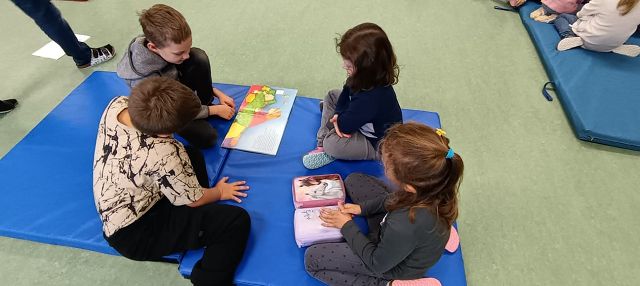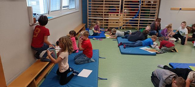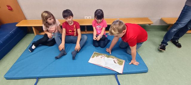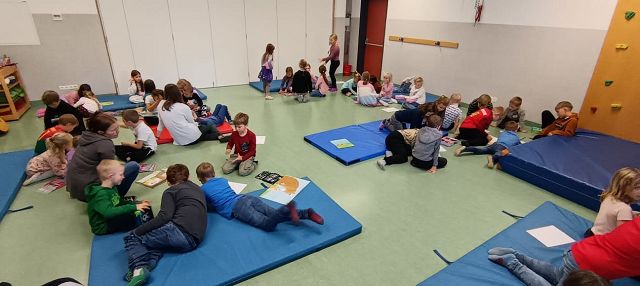Die Kinder der 3. Klasse haben eine Lesepatenschaft mit den Schulanfängern im Kindergarten gegründet. In kleinen Gruppen lasen die Volksschulkinder am 23. Oktober 2025 das erst Mal spannende und lustige Geschichten vor und zeigten dabei, wie viel Freude Lesen machen kann. Anschließend arbeiteten die Kinder gemeinsam an einem Arbeitsblatt, das zum vorgelesenen Buch passte. Dabei wurde eifrig gemalt, geschrieben und gelacht. Die Aktion hat allen großen und kleinen Leserinnen und Lesern viel Spaß gemacht – und vielleicht hat so manches Kindergartenkind jetzt schon Lust bekommen, bald selbst ein richtig guter Leser oder eine gute Leserin zu werden! Unsere Lesepatenschaft wird natürlich schon bald fortgesetzt!