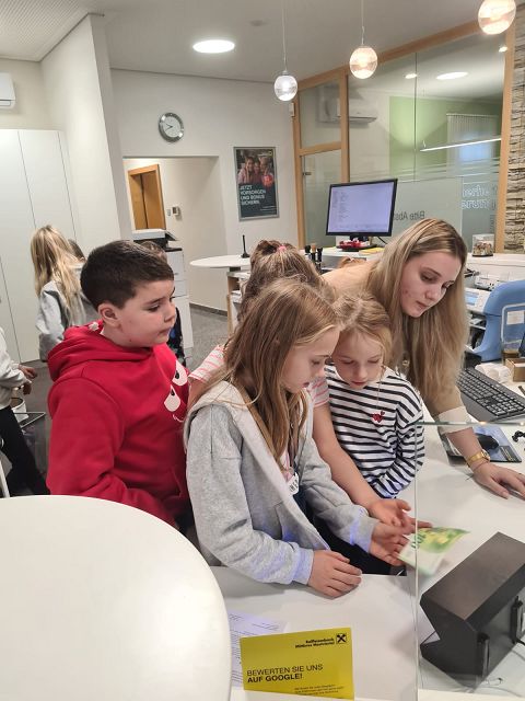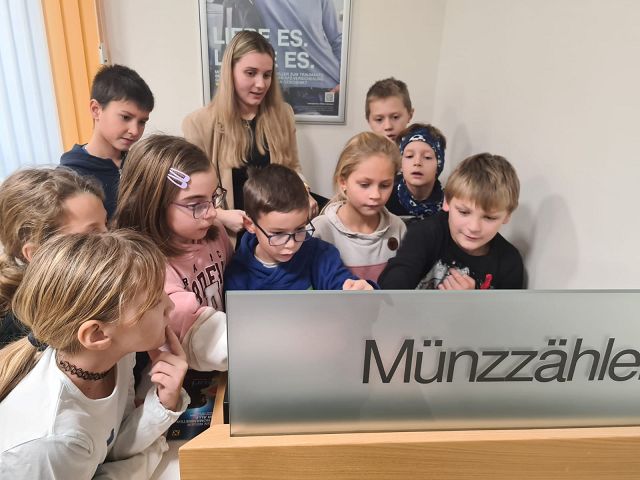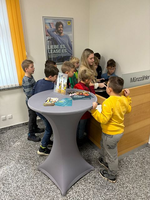 Am Donnerstag, den 29.11.2024 durften die Kinder der 3a und 3b die Raiffeisenbank in Altenmarkt besuchen. Die Kinder wurden in drei Gruppen geteilt. Bei einer Station bekamen sie einen kleinen Einblick in das Thema “Sparen”. Bei der zweiten Station wurden die wichtigsten Geräte (Bankomat, Münzzählmaschine, Kontoauszugsgerät) präsentiert. Ebenso durften die Kinder Geldscheine unter einer UV-Lampe betrachten. Ein besonderer Höhepunkt unseres Besuchs war der Tresor, der für die Kinder geöffnet wurde. Herzlichen Dank an das gesamte Team für die besonders interessante Zeit in der Bank!