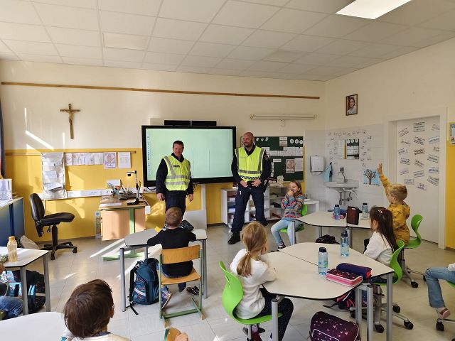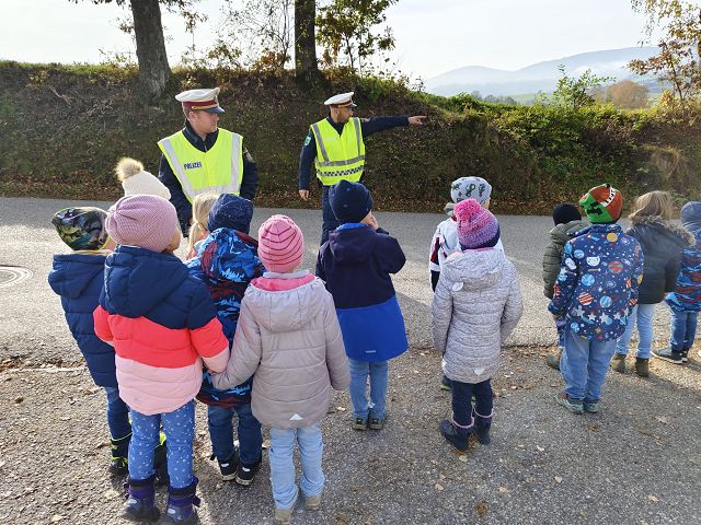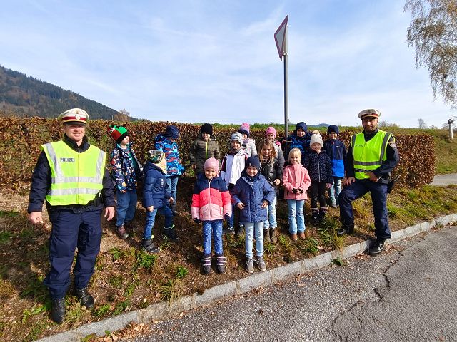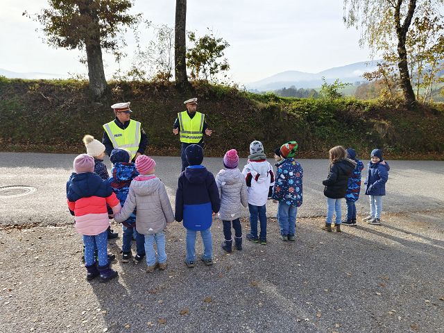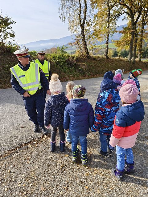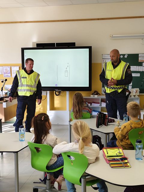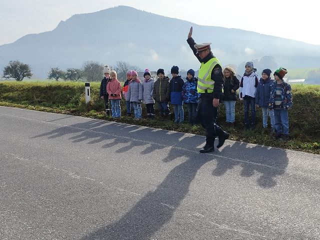 Es ist uns ein großes Anliegen, dass alle unsere Schülerinnen und Schüler jeden Tag sicher auf ihrem Schulweg unterwegs sind. Daher wurde auch in diesem Schuljahr am 6.11.2024 von zwei Beamten der Polizeistelle Pöggstall von der 1. bis zur 3. Klasse eine Stunde Verkehrserziehung durchgeführt. Die Beamten versuchten den Kindern zu verdeutlichen, wie wichtig es ist, sich auf der Straße sichtbar zu machen, aufmerksam zu sein und immer gut auf sich selber achtzugeben. Auch das richtige Verhalten gegenüber Fremden wurde im Unterricht besprochen. Im Anschluss wurde das richtige Überqueren der Straße gleich in der Praxis geübt und gefestigt.
