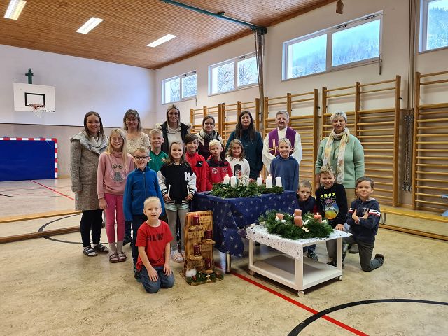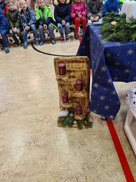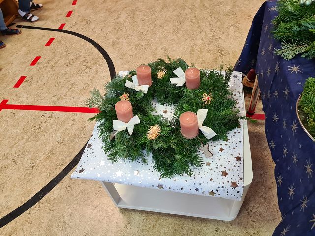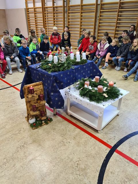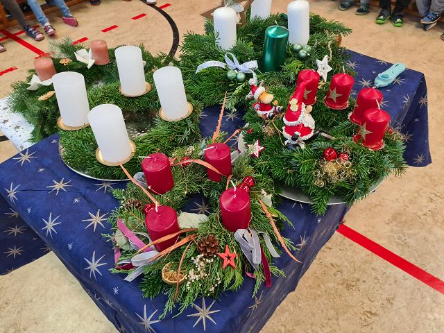 Am 1.Dezember 2023 fand unsere traditionelle Adventkranzweihe statt. Unser Herr Pfarrer weihte im Rahmen einer kleinen Feierstunde die, von den Elternvertreterinnen gespendeten, Adventkränze. In der Adventzeit werden sich die Schülerinnen und Schüler mit ihren Lehrerinnen regelmäßig um den Adventkranz versammeln und sich gemeinsam auf Weihnachten einstimmen.