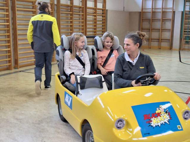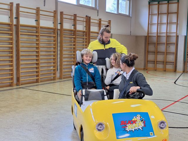 Am 24.11. 2023 durften die 1. und die 2. Klassen beim ÖAMTC Workshop „Blick und Klick“ richtiges Verhalten im Straßenverkehr, insbesondere bei Ampeln und Zebrastreifen lernen.