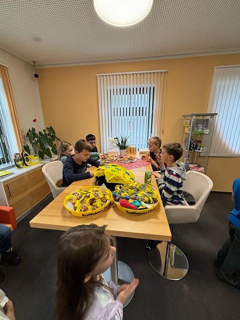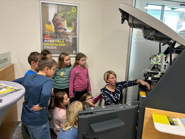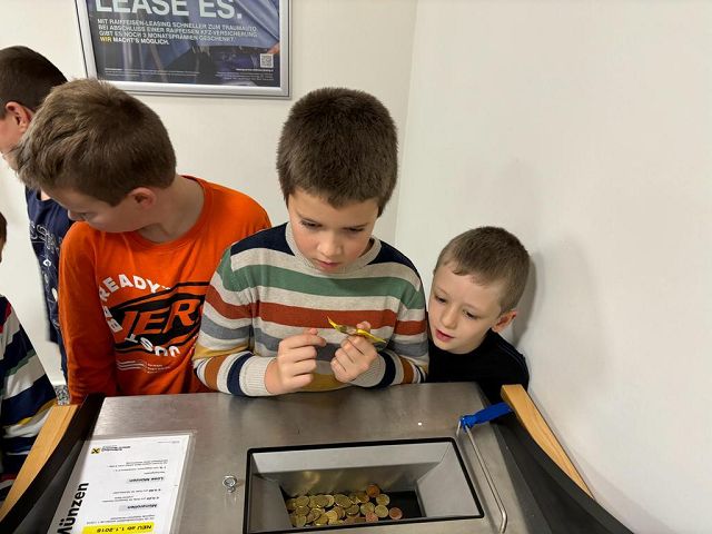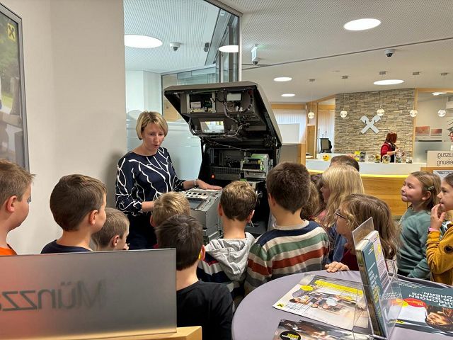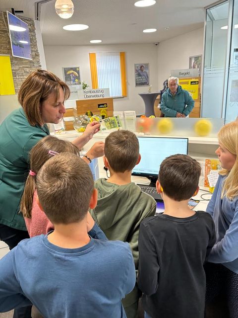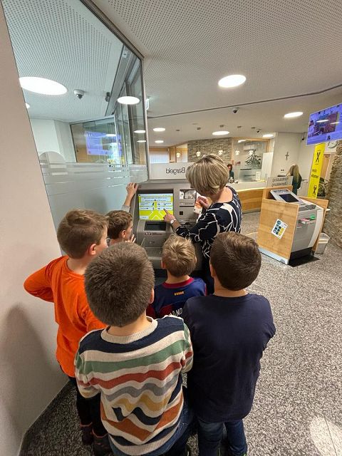 Am Donnerstag, den 30.11. 2023 durften die Kinder der dritten Klasse die Raiffeisenbank Yspertal besuchen. Zu Beginn bekamen die Kinder einen kleinen Einblick in das Thema “Sparen”. Anschließend durften sie in Gruppen das Bankgebäude erkunden und Frau Wurzer und ihre Kolleginnen zeigten ihnen die wichtigsten Geräte (Bankomat, Münzzählmaschine, Kontoauszugsgerät). Ebenso durften die Kinder Geldscheine unter einer UV-Lampe betrachten. Ein besonderer Höhepunkt unseres Besuchs war der Tresor, der für die Kinder geöffnet wurde. Herzlichen Dank an Frau Wurzer für die besonders interessante Zeit in der Raiffeisenbank, für die leckeren Muffins und die tollen Geschenke.