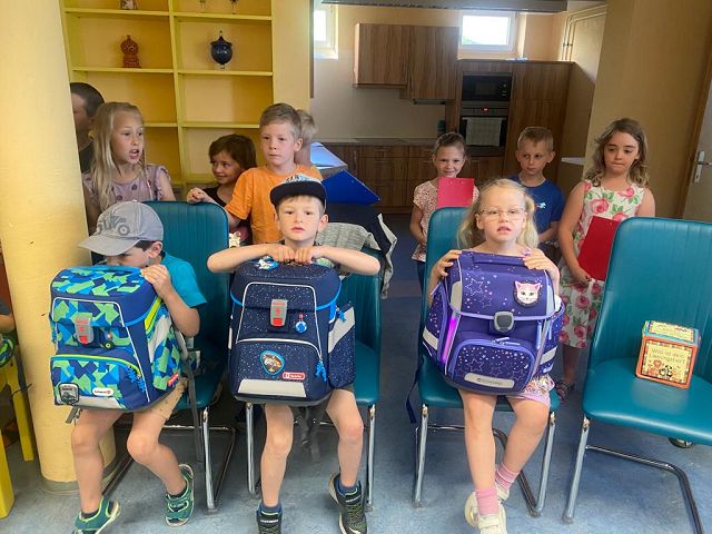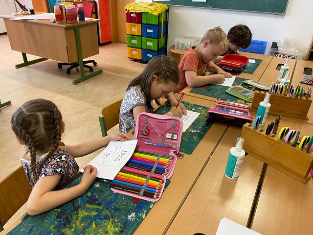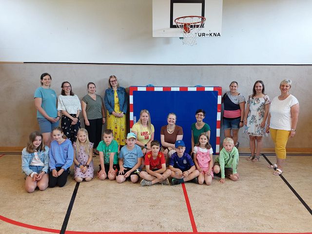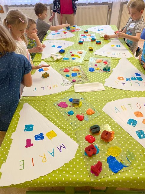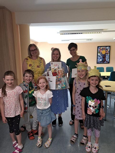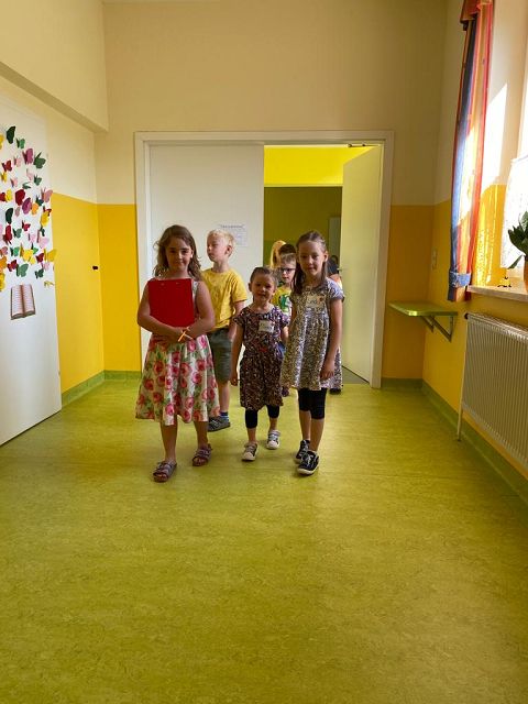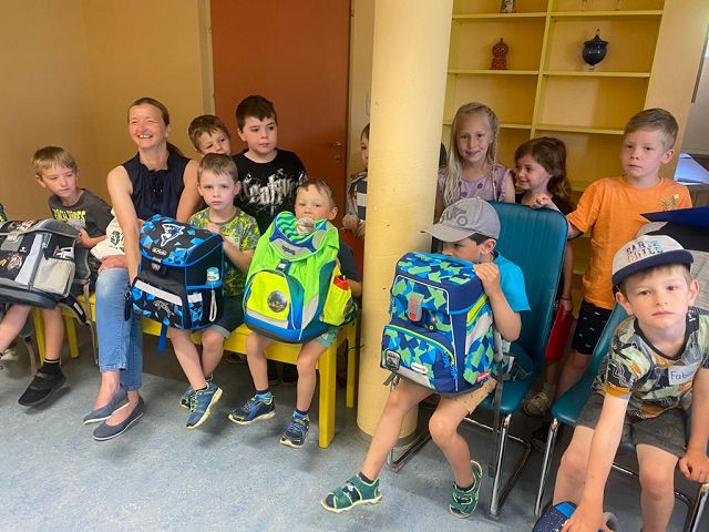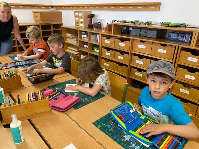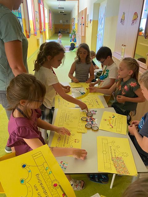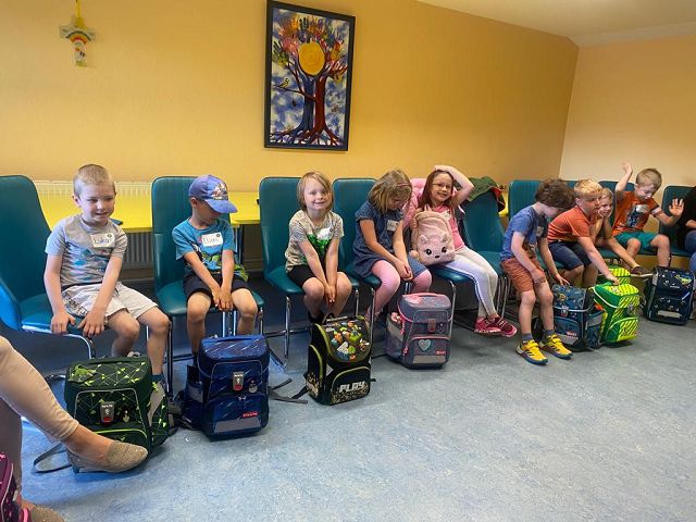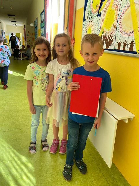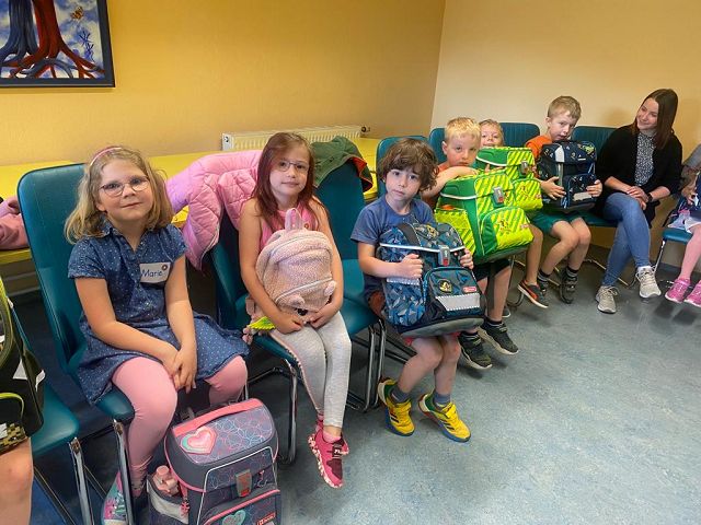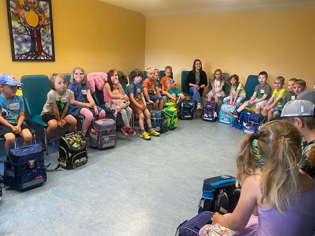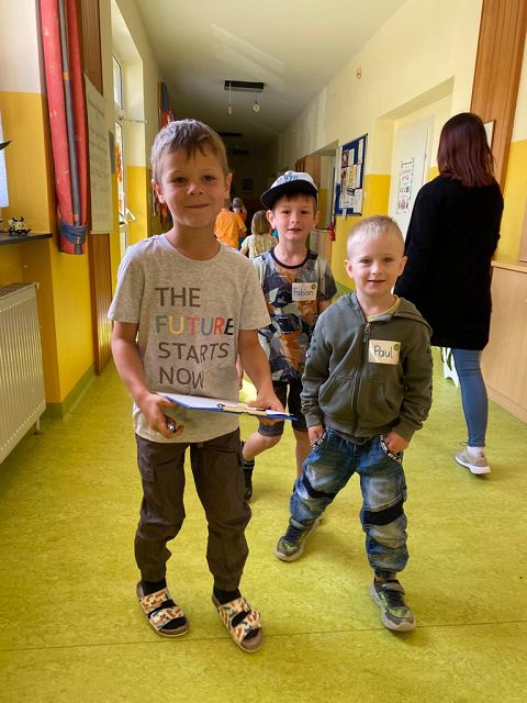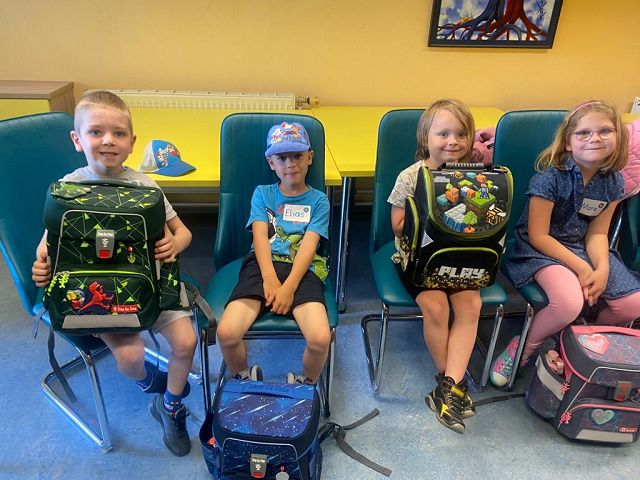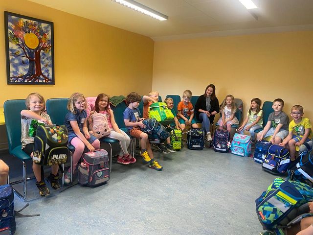 Am Donnerstag, den 1. Juni 2023, konnten wir an unserer Schule die 23 neuen Schulanfängerinnen und Schulanfänger aus dem Kindergarten zum Schultaschentag begrüßen. Mit dem großen Schulbus kamen sie mit ihren Pädagoginnen schon zeitig zu uns und verbrachten einen ganzen Vormittag an unserer Schule. Gemeinsam mit den Kindern aus der 1a Klasse wurde eine Schulhausrallye durchgeführt und ein Bilderbuch vorgelesen. Im Werkraum durften die Kindergartenkinder ihre Schultüte und ihr „Klassenmaskottchen“ gestalten. In ihrer zukünftigen Klasse schauten sich die Kinder einen lustigen Sketch mit „Mister Matt“ an und bewiesen ihre Englischkenntnisse. Zum Abschluss gab es noch Spiel und Spaß am Spielplatz der Schule.