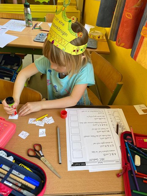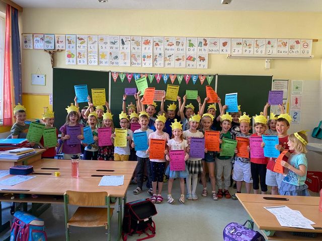 Am 2.6. feierten die beiden ersten Klassen als Abschluss der Buchstabenerarbeitung ein Buchstabenfest. Anhand vieler lustiger Stationen wurden die Buchstaben wiederholt und gefestigt. Besonders beliebt waren das Basteln einer Krone, einer Buchstabenkette, das Backen von Buchstabenkeksen & das Essen einer Buchstabensuppe. Alle hatten viel Spaß & bekamen zum Schluss noch eine Urkunde.