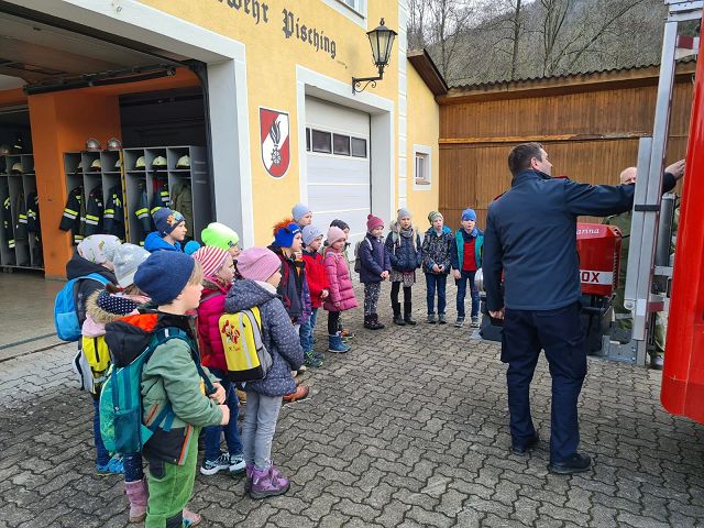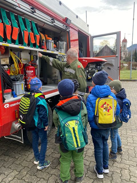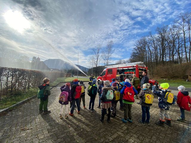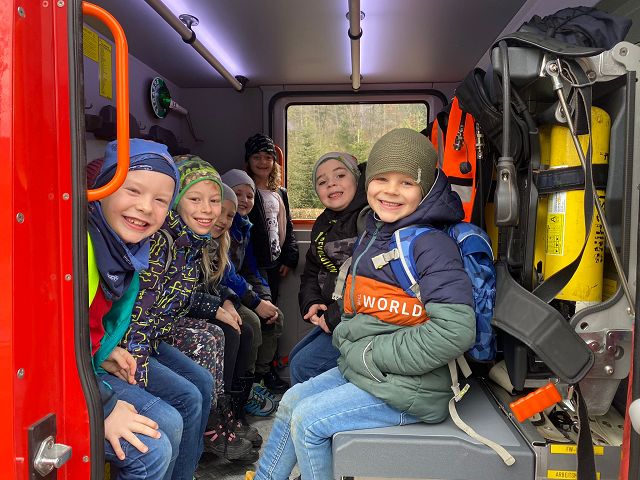Am 31.3.2023 besuchten die beiden 1. Klassen die Freiwillige Feuerwehr Pisching. Ganz begeistert erkundeten die Kinder das Feuerwehrauto und wurden über alle technischen Geräte aufgeklärt. Nach einer kurzen Stärkung konnten die Kinder auch die Kleidung der Feuerwehrmänner anprobieren. Das Highlight des Tages war die Fahrt im Feuerwehrauto.