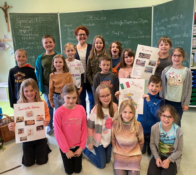 Am Freitag vor den Osterferien besuchte Frau Melanie Landstetter die 3a Klasse. Sie brachte die Kinder und ihre Frau Lehrerin auf den Geschmack der italienischen Sprache, der Kultur und der Kulinarik. Die Kinder lernten ein paar italienische Wörter und konnten ihr Wissen über das Land Italien vertiefen. Zum Schluss gab es eine italienische Spezialität, nämlich Tiramisu.