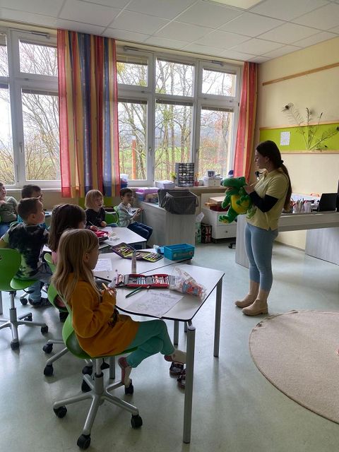 Zweimal im Schuljahr bekommen alle Klassen Besuch von der Zahngesundheitserzieherin Denise Tosca und ihrem „Kroko“. In lustbetonter Art und Weise werden Unterrichtsinhalte bezüglich der Zahngesundheitserziehung allen Kindern nahegebracht und auf das richtige Zähneputzen wird jedes Mal großen Wert gelegt. Alle freuen sich auf den „Besuch von Kroko“ und haben viel Spaß mit ihm. So fällt das Lernen gleich viel leichter.