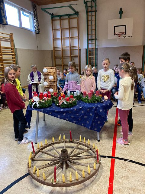 Am Donnerstag, den 24. November 2022 konnten wir nach zweijähriger Pause endlich wieder eine gemeinsame Adventfeier mit unserem Herrn Pfarrer durchführen. Wie es schon viele Jahre an unserer Schule Tradition ist, wurden die von den Elternvertreterinnen gespendeten Adventkränze im Zuge dieser kleinen Feier geweiht. Gemeinsam wurde mit Liedern, Gedichten und kleinen Beiträgen der Beginn der Adventzeit gefeiert. Wir sagen „Danke“ für die schönen Adventkränze und wünschen allen Familien eine schöne und besinnliche Adventzeit.