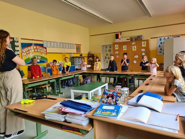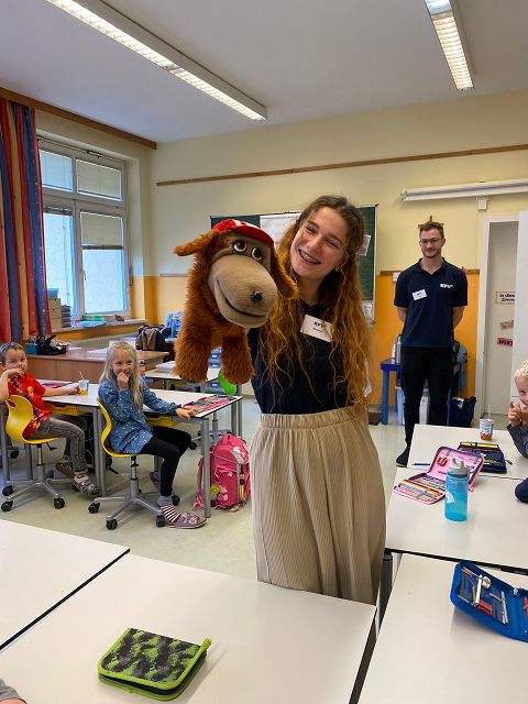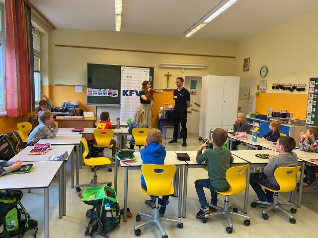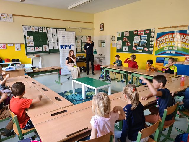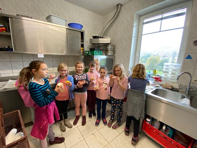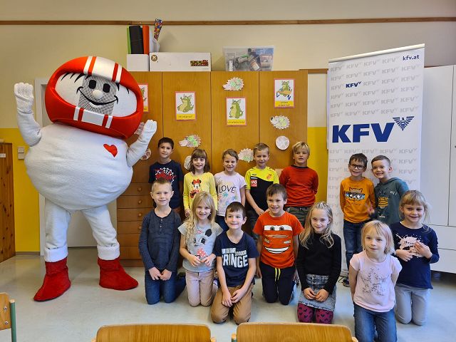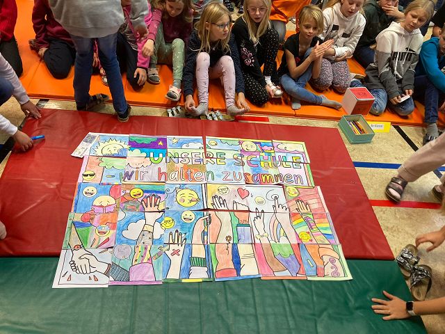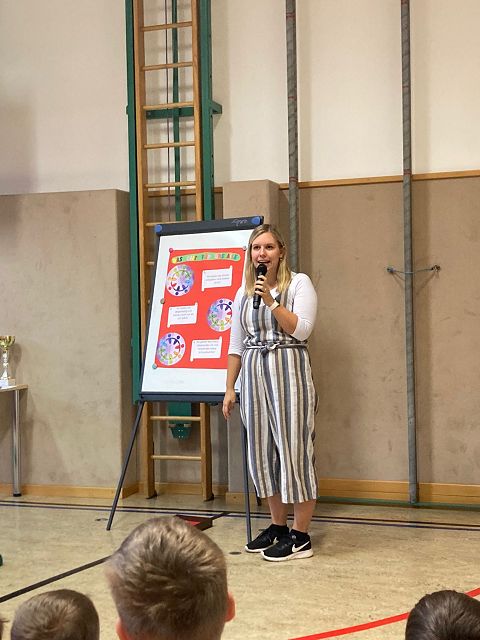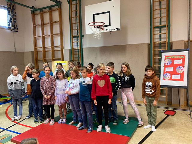 Jeden ersten Freitag im Monat finden an unserer Schule auch in diesem Schuljahr wieder die sogenannten Schülervollversammlungen statt. Am 4. November 2022 stand der erste Termin am Stundenplan. Mit dem Lied „Schule ist mehr“ nahmen die Kinder ihre Plätze ein und warteten gespannt auf die einzelnen „Programmpunkte“. Begonnen wurde mit einem Rückblick, das heißt mit einem Blick in die „Dankebox“ der einzelnen Klassen. Hierzu lasen die gewählten KlassensprecherInnen besondere Aktivitäten, Projekte und Vorkommnisse des Schulalltages, für die die Kinder an unserer Schule besonders dankbar sind, vor. Natürlich ließen wir auch unsere Geburtstagskinder der Vormonate hochleben. Sie durften am „Geburtstagsrad“ drehen und es gab eine Glückwunschkarte und ein Kleeblattnugget als kleine Überraschung. Jedes Mal wird eine Klasse auch ein kleines Gedicht oder Lied zu unseren Schülervollversammlungen beitragen. Dieses Mal hörten wir von der 1b Klasse ein „Apfelgedicht“. Bei dieser Versammlung wurden auch unsere 3 wichtigsten, von den SchülerInnen ausgewählten, Schulregeln vorgestellt. Alle Kinder haben fest versprochen diese 3 Regeln ganz besonders brav zu befolgen und das Versprechen sogar mit ihrer Unterschrift bestätigt. Ein weiterer Programmpunkt war dieses Mal auch das Zusammenbauen des Gemeinschaftsbildes „Unsere Schule – wir halten zusammen“. Das soll im heurigen Schuljahr auch unser neues Schulmotto sein. Zum Abschluss wurde von jeder Klasse noch das „Freundlichste Kind des Monats“ prämiert. Der überreichte Pokal darf, sichtbar für alle, bis zur nächsten Versammlung am Garderobenplatz des jeweiligen Kindes stehen. Wir gratulieren ganz herzlich.