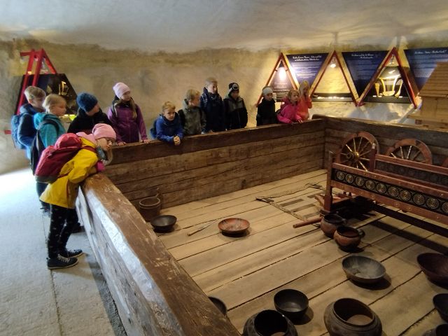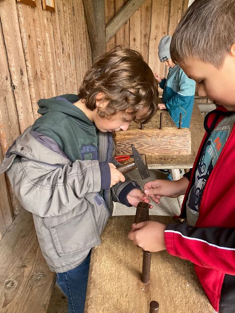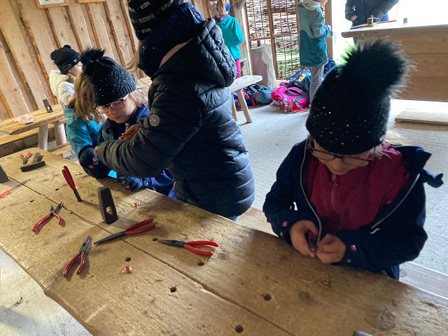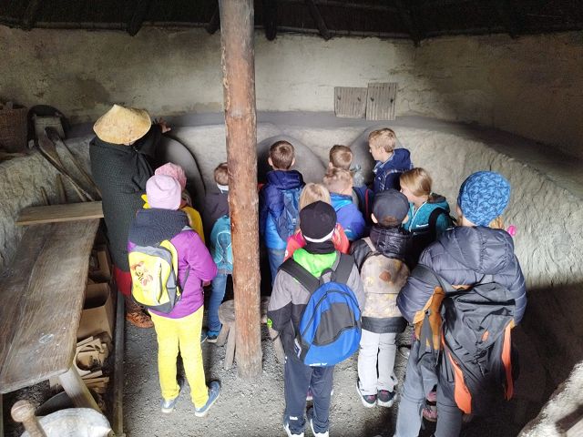 Passend zum aktuellen Sachunterrichts Thema „geschichtliche Epochen“ wollten die Kinder nicht nur theoretisches Wissen sammeln, sondern auch praktische Eindrücke gewinnen. Daher besuchten die beiden 3. Klassen am Freitag, den 23.0.9.2022 das Keltendorf in Mitterkirchen. Vor Ort konnten nicht nur interessante Fundstücke aus vergangenen Jahren besichtigt werden, sondern auch verschiedene Bauweisen der Kupfer-, Bronze- und Eisenzeit bestaunt werden. Besonders beeindruckend waren jedoch die altertümlichen Praktiken des Feuermachens und Schmuckherstellens.