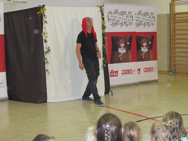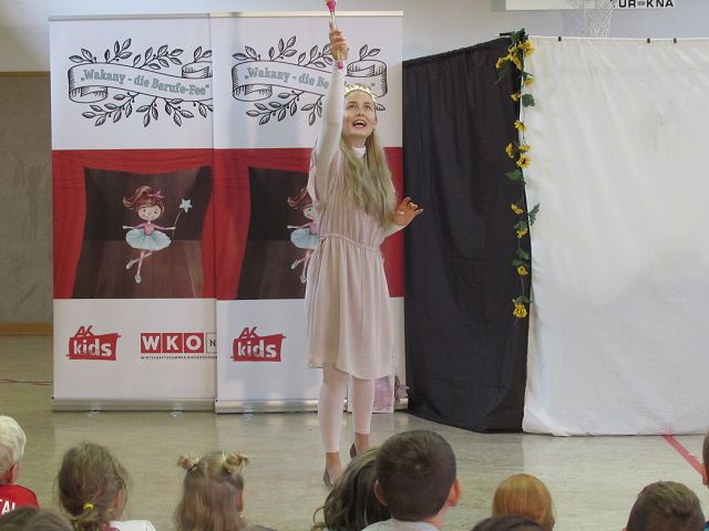 Am Freitag, den 30. September 2022 fand eine lustige Theatervorstellung zum Thema „Lehre und Berufe“ an unserer Schule statt. Die Berufe-Fee Wakany stellte ihren beiden Helfern und den Schülerinnen und Schülern Rätsel zu verschiedenen Lehrberufen und mit viel Spaß und gute Laune ging es gemeinsam durch das Programm. Die Kinder konnten fast alle Berufe erraten und durften zum Schluss auch ihre Berufswünsche nennen. Sie erkannten auch, dass jeder Beruf wichtig für unsere Gemeinschaft ist und keiner fehlen sollte. Die Vorstellung war für unsere Schule kostenlos und wurde von der Wirtschaftkammer NÖ finanziert.