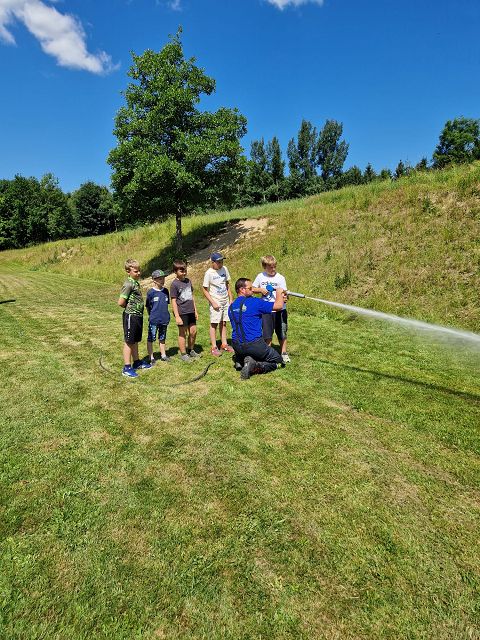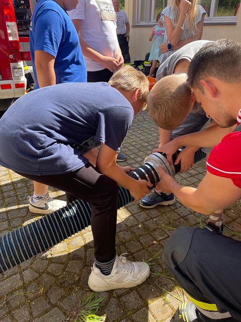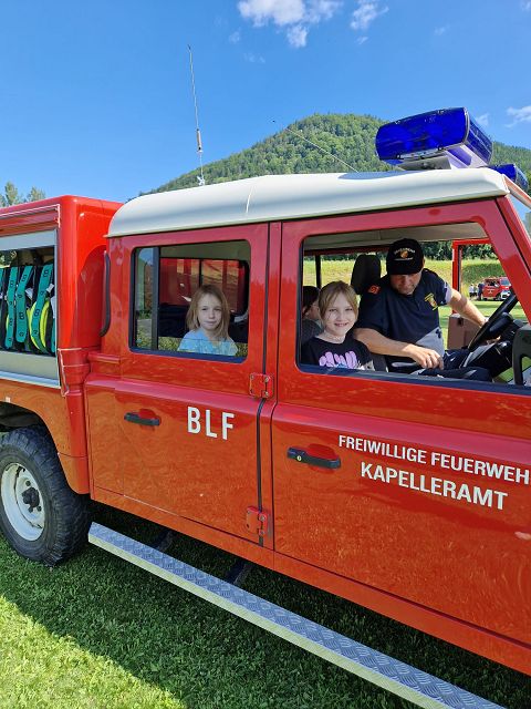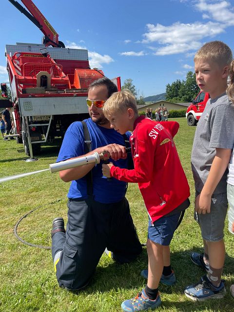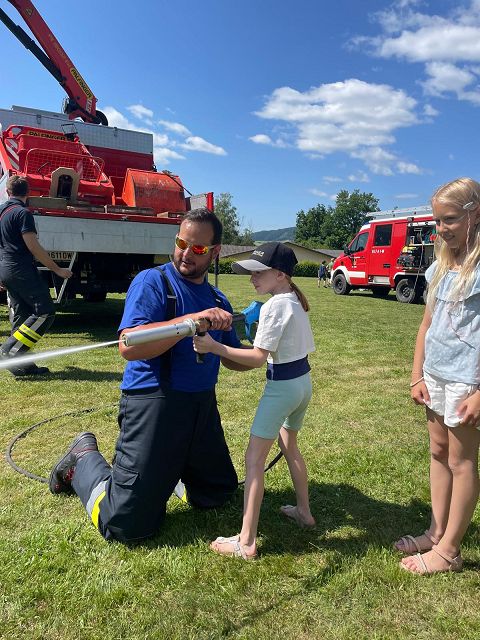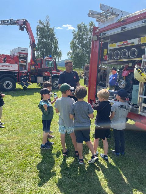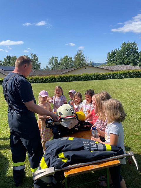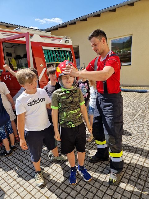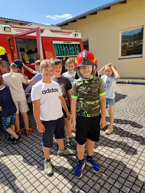 Am „Fenstertag“, den 20. Juni 2025 hieß es „Feuer“, „Feuer“ in unserer Schule. 35 Feuerwehrmänner und Feuerwehrfrauen waren in kürzester Zeit vorort und die „Rettung“ von 100 Schülerinnen und Schülern mit ihren Lehrkräften gelang ohne Probleme. Gott sei Dank handelte es sich nur um eine Übung, die regelmäßig durchgeführt werden muss.Denn im Ernstfall ist es wichtig, dass die Kinder wissen, wie sie bei Gefahr reagieren und sich verhalten sollen. Natürlich ließen wir die 4 Feuerwehren unseres Yspertals nicht gleich wieder nach Hause fahren. Unter der Leitung von Feuerwehrkommandant Martin Mistelbauer wurde von allen Feuerwehren der Gemeinde ein toller Stationbetrieb für unsere Kinder auf die Beine gestellt. Mit viel Freude und Action brachten die vielen freiwilligen Frauen und Männer den Kindern die vielen verschiedenen Rettungsaufgaben einer Feuerwehrfrau oder eines Feuerwehrmannes praktisch näher. So ein toller Schultag sollte öfters sein! Danke an alle Feuerwehrleute für diesen schönen Vormittag!