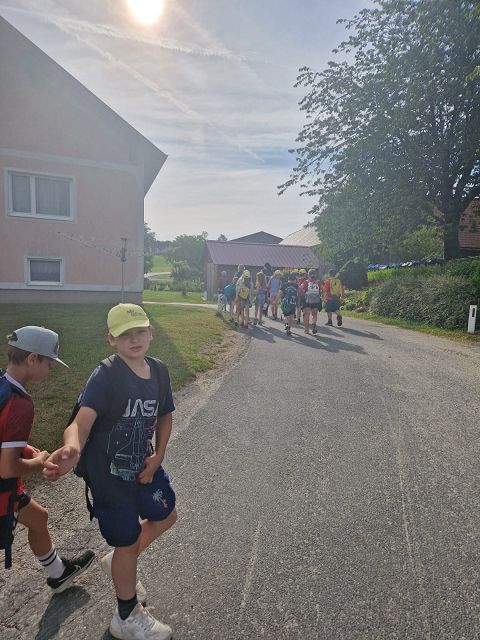 Am 23. Juni 2025 unternahmen die Schülerinnen und Schüler der Klassen 3a und 3b einen Wandertag von Pisching über Gmaining und Ried nach Laimbach. Begleitet von ihren Lehrerinnen führte der Weg bei sonnigem Wetter durch die Umgebung bis zum Minimarkt Laimbach. Dort angekommen, hatten die Kinder die Möglichkeit, mit ihrem mitgebrachten Taschengeld selbstständig einzukaufen. Anschließend verbrachten sie noch Zeit am Spielplatz, wo sie gemeinsam spielten und sich ausruhen konnten. Der Wandertag bot eine gelungene Abwechslung zum Schulalltag und war ein schöner Abschluss des Schuljahres.
