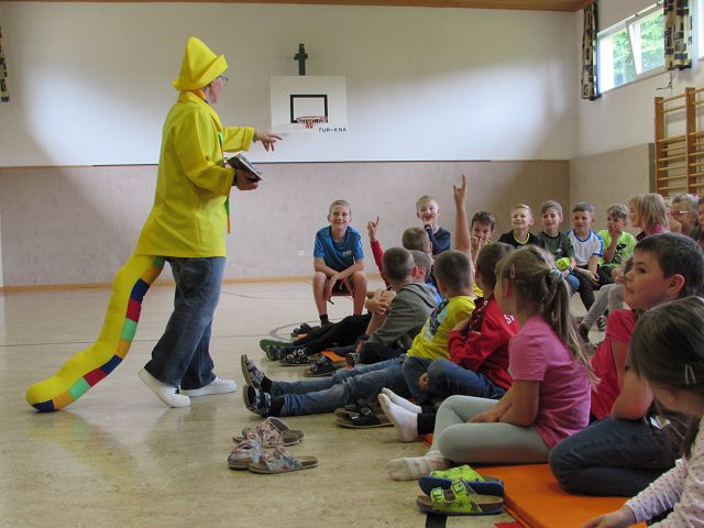 Am 25. Mai 2022 besuchte uns die Kinderbuchautorin Manuela Aigner, alias „Willi Wurm“ und las unseren Schülerinnen und Schülern einige kleine Ausschnitte aus ihren Werken vor. Die Kinder kamen auch in den Genuss ihrer leckeren „Willi Wurmkekse“ und für jede Klasse gab es einen selbstgehäkelten „Willi Wurm“als kleines Geschenk. Die Kosten für diese Lesung wurden von Frau Doktor Carmen Brandstätter übernommen. Im Namen aller Kinder möchten wir uns sehr herzlich dafür bedanken.
