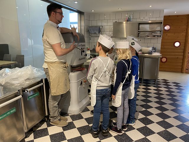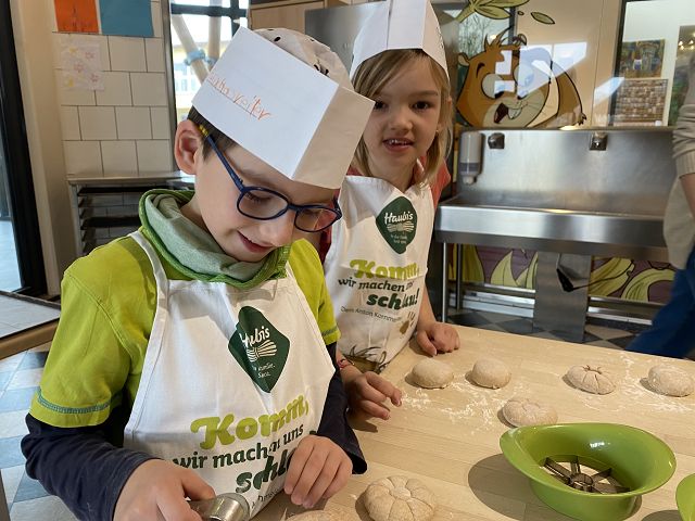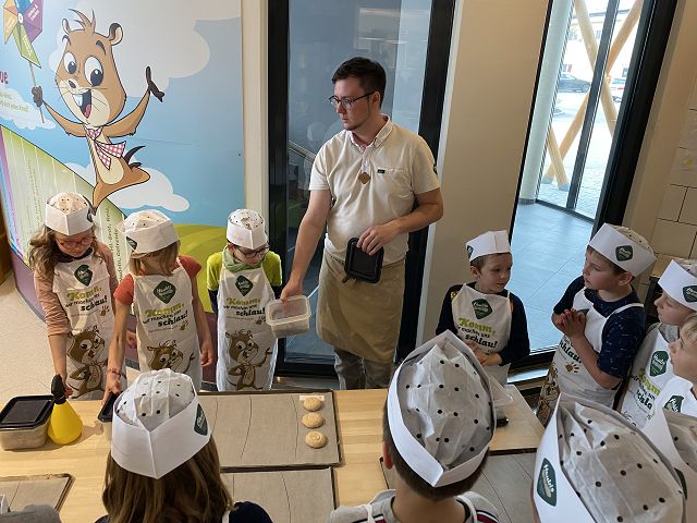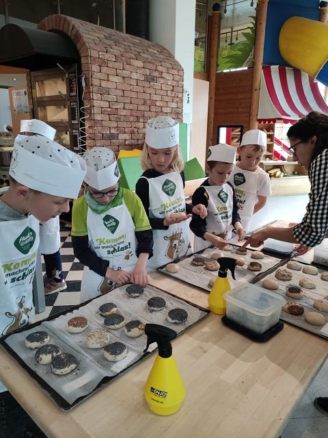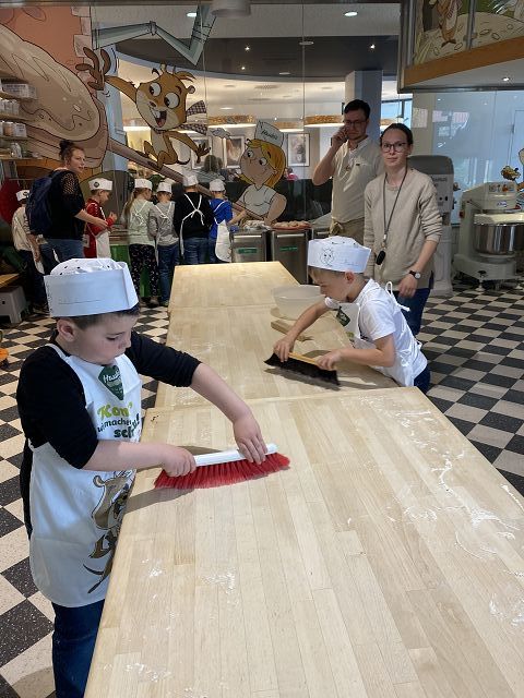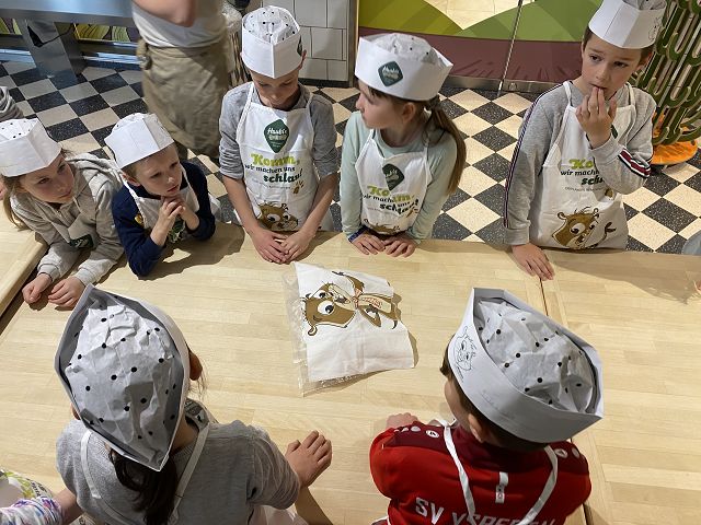 Am 20. April machte die 1. Klasse einen Ausflug ins Haubiversum. Dort durften die Kinder einen Einblick in die Kunst des Brotbackens gewinnen. Mit großer Begeisterung formten und bestreuten die Kinder Brötchen, die sie anschließend mit nach Hause nehmen durften. Eine leckere, gesunde Jause durfte natürlich auch nicht fehlen. Nach der Stärkung ging es weiter mit einem Rundgang durch´s Haubiversum. Die Kinder konnten mit allen Sinnen Wissenswertes erfahren und hatten sichtlich Freude daran. Im hauseigenen Kino konnten die Kinder noch einen Kurzfilm ansehen. Zum Schluss hatten die Kinder noch viel Spaß am dortigen Spielplatz.