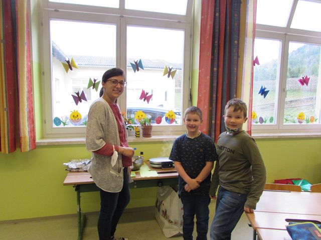 In der letzten Schulwoche vor den Osterferien standen Unterrichtsthemen wie Frühlingsbeginn, Osterbräuche und der „Osterhase“ im Mittelpunkt. Im Werkunterricht bastelten alle Kinder ein kleines „Osternest“ und der „Osterhase“ befüllte es mit kleinen Geschenken und Süßigkeiten. Auch die „Osternestsuche“ durfte dieses Jahr nicht fehlen. So wurden die „Nesterl“ im Schulhaus oder im Schulgarten versteckt und die lustige Suche danach konnte beginnen.