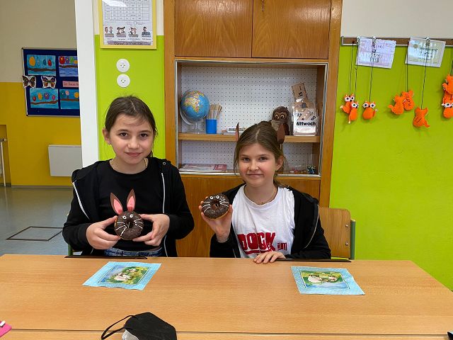 Am letzten Schultag überraschten die Elternvertreter unsere Schülerinnen und Schüler noch mit einem leckeren „Osterhasendonut“. Dieser schmeckte den Kindern nach dem Theaterbesuch so richtig gut. Herzlichen Dank dafür!
