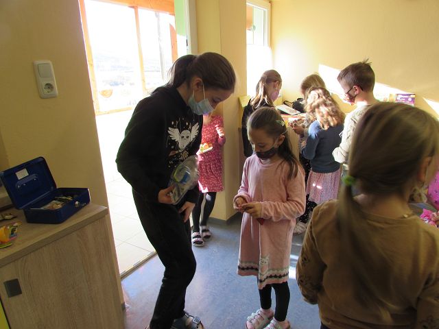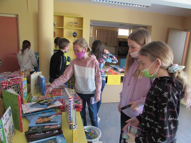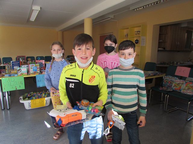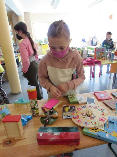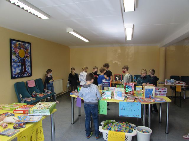 In der Woche vom 21. bis zum 25. März 2022 fand an unserer Schule zum dritten Mal ein Bücher-und Spielzeugflohmarkt statt. Durch zahlreiche Spenden vieler Kinder unserer Schule und durch großzügige Spielzeugspenden der Firma Fichtinger, des Geschäfts „Die bunte Ecke“ und der Firma „NewCo“ konnte ein großes „Sortiment“ zum „Verkauf“ angeboten werden. Einige freiwillige Helfer aus der dritten Klasse unterstützten die Kinder beim „Einkaufen“ und bald waren die „Einkaufstaschen“ der Schülerinnen und Schüler gefüllt. Insgesamt konnte ein Reinerlös von 574 € erzielt werden. Mit diesem Geld sollen sich die Schülerinnen und Schüler wieder einen „besonderen Wunsch“ erfüllen können. In den Kinderkonferenzen wird darüber noch ausführlich beraten und abgestimmt.