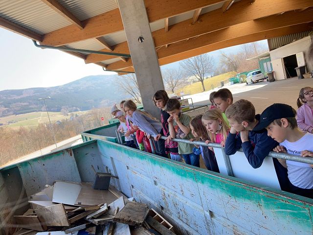 Passend zum aktuellen Sachunterrichtthema „Müll“, hatten die Kinder der 2. Schulstufe die Chance das WSZ Yspertal zu besichtigen. Bei einem Blick hinter die Kulissen wurde das Wertstoffzentrum genau unter die Lupe genommen. In Begleitung unseres Experten Herrn Johannes Kadla (GVU) wurden die verschiedenen Container besichtigt und deren Inhalte besprochen. In weiterer Folge freuen wir uns bereits darauf, dieses Thema bei einem schulinternen Workshop zu vertiefen.