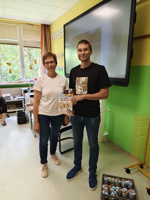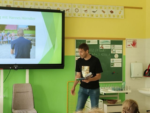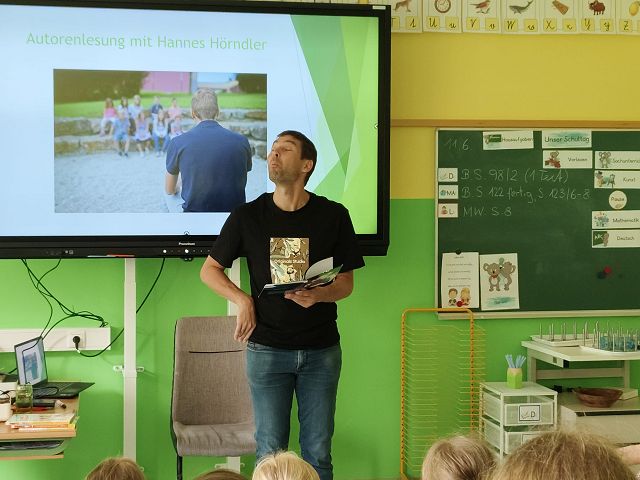 Am 11. Juni 2025 fand in unserer Schule eine wirklich gelungene, interessante und lustige Autorenlesung mit dem bekannten Kinderbuchautor Hannes Hörndler statt. Die Firma Schreibart by bsf Fichtinger lud alle unsere Schülerinnen und Schüler dazu ein. Herr Hörndler verstand es die Kinder mit der Präsentation einiger seiner Bücher so richtig gut zu unterhalten, sie mit seinen Erzählungen zu fesseln und ihre Neugierde auf neue Leseabenteuer zu erwecken. Herzlichen Dank an die Firma Schreibart und die Familie Fichtinger für diese schöne „Schulstunde“.
