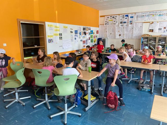 Am 17. Juni 2025 machten sich die Schülerinnen und Schüler der beiden 1. Klassen und der 2. Klasse zu Fuß auf den Weg in die Bücherei der Sport-MS Yspertal. Es wurde ein umfangreiches Programm seitens der MS-Yspertal organisiert – vielen Dank dafür! Die Kinder durften in der Bücherei rätseln, in der Küche unterschiedliche Stationen bewältigen und sich am Sportplatz austoben. Mit einem musikalischen Abschluss wurde der ereignisreiche Vormittag abgerundet.