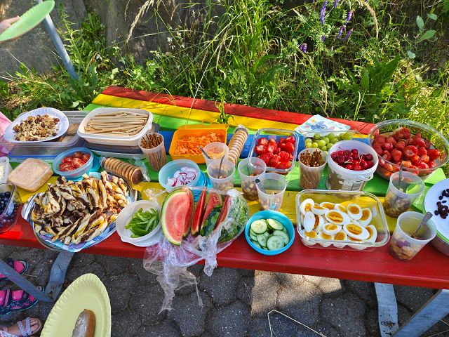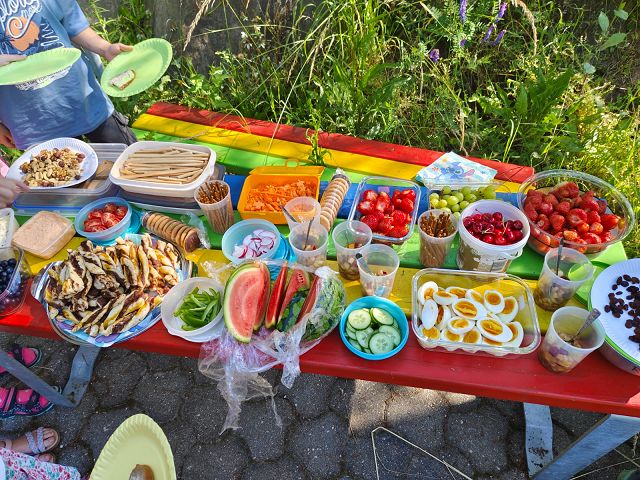 Am 18. Juni 2025 nutzten die Schülerinnen und Schüler der 1b Klasse das derzeitige schöne Wetter und machten gemeinsam ein Picknick im Garten unserer Schule. Jedes Kind nahm einige leckere Speisen mit und gemeinsam wurde ein richtiges Buffet aufgebaut. Alle langten mit großem Appetit zu, denn an der frischen Luft schmeckte es allen doppelt so gut. Als der Hunger gestillt war, war auch noch Zeit für Spiel und Spaß am Spielplatz.