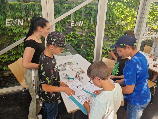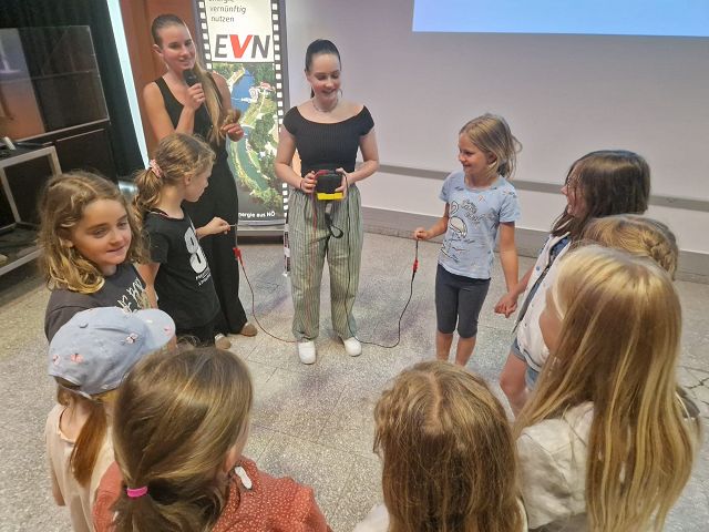 Gut gestärkt stiegen wir in den Bus, der uns gemeinsam mit den Dritt- und Viertklässlerinnen und -klässlern der VS Dorfstetten zu unserem Ziel brachte: dem Kraftwerk Theiß, wo wir um 15 Uhr herzlich empfangen wurden. Nachdem wir unser Gepäck verstaut hatten, lauschten wir einem informativen und altersgerecht gestalteten Vortrag über Energie, Strom und verschiedene Arten von Kraftwerken.