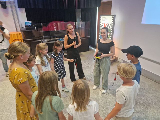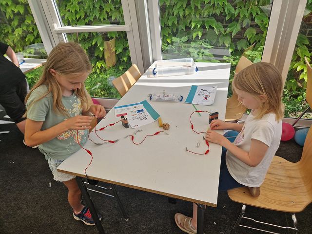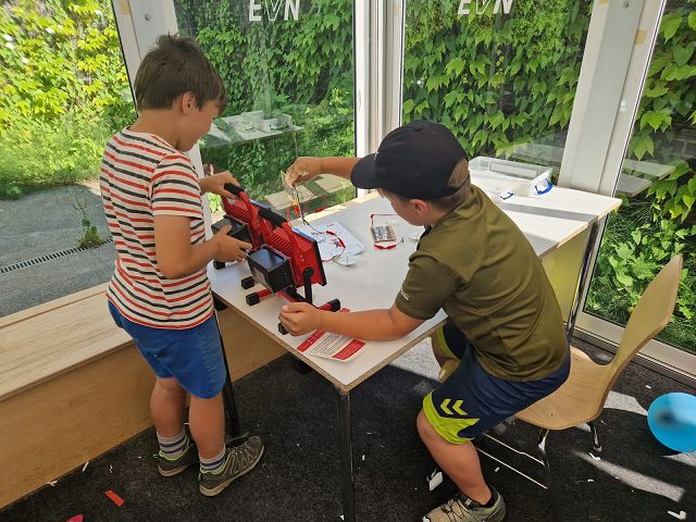 Anschließend stärkten wir uns bei einer kleinen Jause, bevor es an die Forscherstationen ging. Dort durften die Kinder selbstständig experimentieren und ihr Wissen rund um das Thema Strom vertiefen – das Spüren des Stroms war ein echtes Highlight! Für tierische Freude sorgten außerdem die „Kraftwerkshasen“, die in kleinen Gruppen liebevoll gestreichelt werden durften.