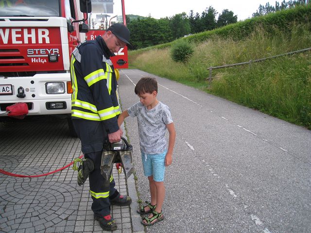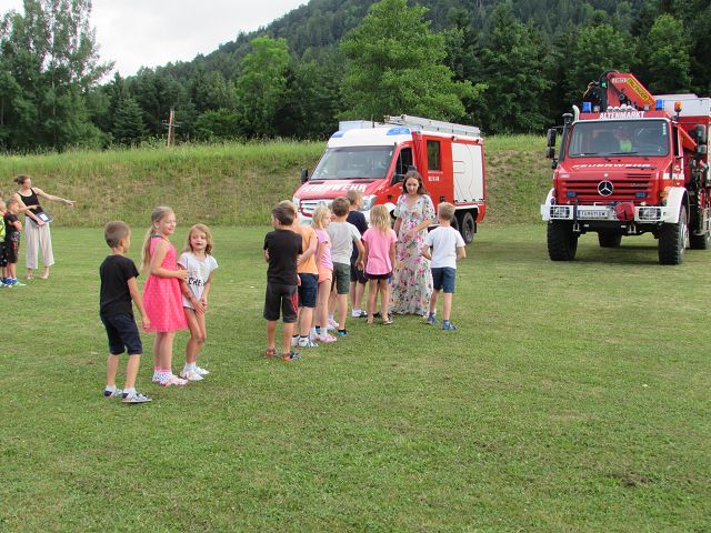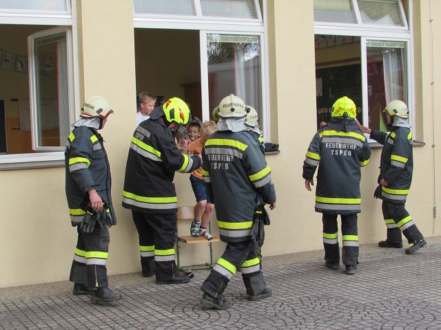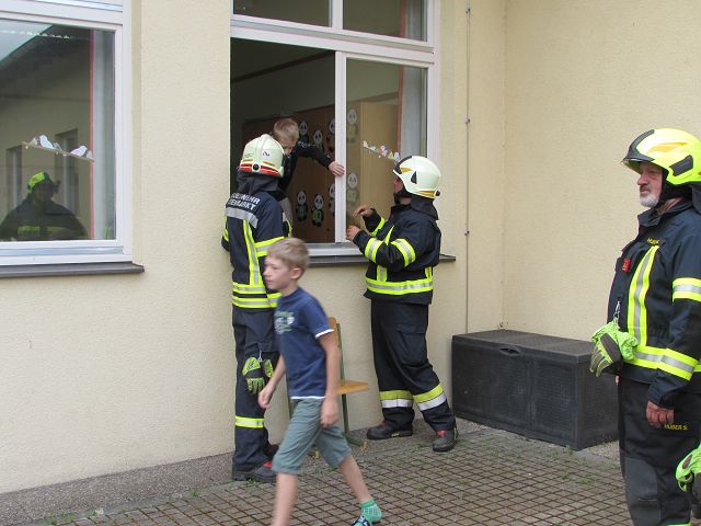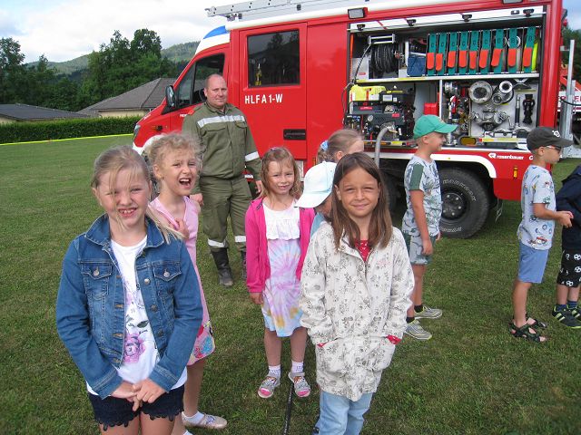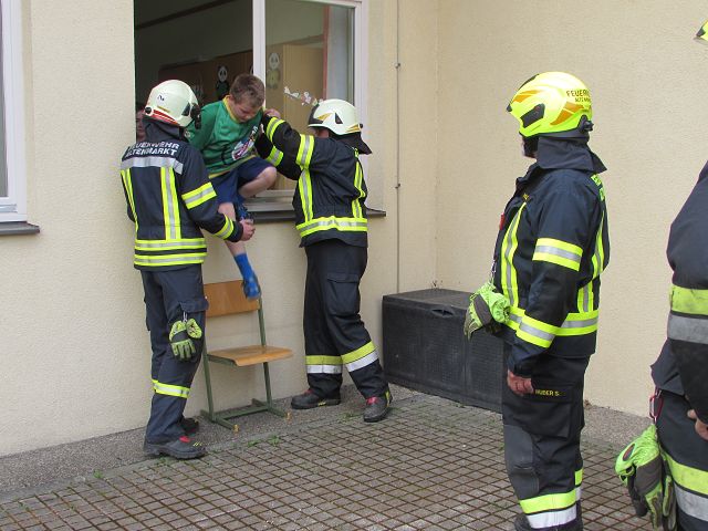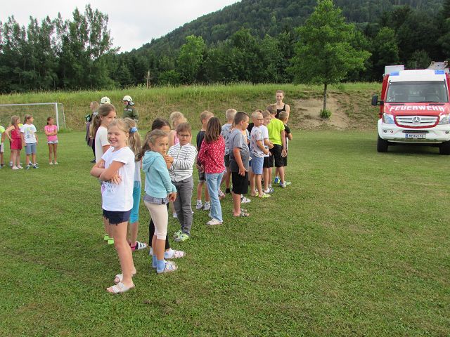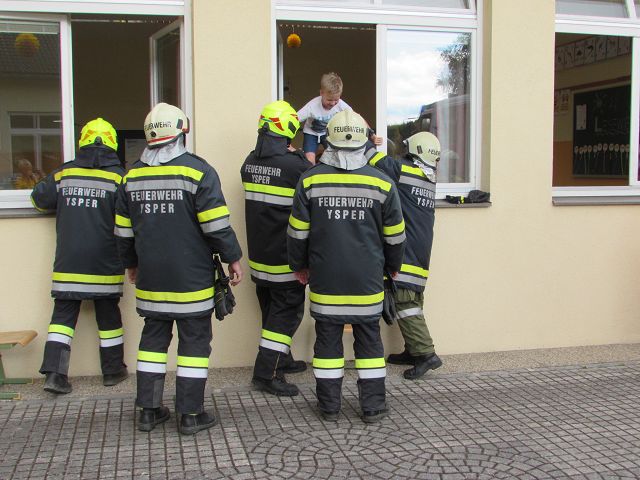 Voriges Jahr hat es wegen Corona nicht geklappt, dieses Jahr aber schon. Unsere 4 Feuerwehren der Gemeinde Yspertal rückten am 25. Juni 2021 mit 28 Mann aus und „räumten“ unser Schulhaus innerhalb von einigen Minuten vollständig. Der „Fluchtweg“ führte Kinder und Lehrkräfte über die Klassenfenster hinaus und sofort marschierten alle zum Treffpunkt auf unserem Sportplatz. Dort warteten auf die Schülerinnen und Schüler viele tolle Attraktionen der Feuerwehr, die für die Kinder im Stationenbetrieb vorbereitet worden sind. Zum Abschluss gab es auch noch für alle eine Fahrt mit dem Feuerwehrauto. Herzlichen Dank an Oberbrandinspektor Martin Mistelbauer für die Organisation dieser gelungenen Feuerwehrübung und an alle Feuerwehrmänner für die Durchführung des Stationenbetriebs.