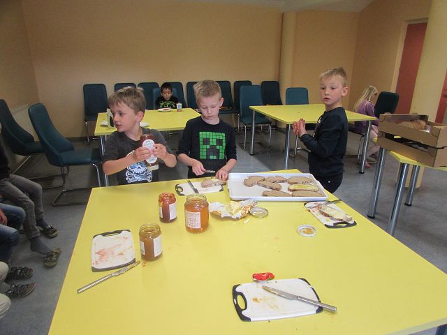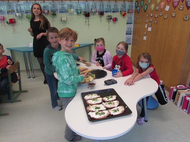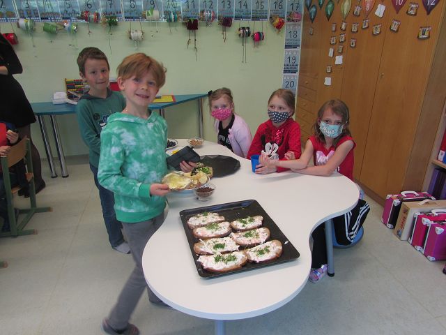 Seit letztem Schuljahr wird bei uns an der Schule die „Gesunde Jause“ einmal monatlich von einer Klasse für alle Schülerinnen und Schüler zubereitet. Unsere 1b – Klasse hatte dieses Schuljahr bis letzten Mittwoch leider noch keine Möglichkeit das zu tun. Daher wurde der 26. Mai 2021 vorige Woche gleich genutzt, und endlich konnten die Jungs und Mädchen aus der 1b auch für alle gesunde Brote, Obst, Gemüse und allerhand andere Leckereien zubereiten. In der Pause wurden die gesunden Lebensmittel an die Schulkameraden verkauft und der Erlös wird wieder für „Wünsche“ der Kinder angespart.