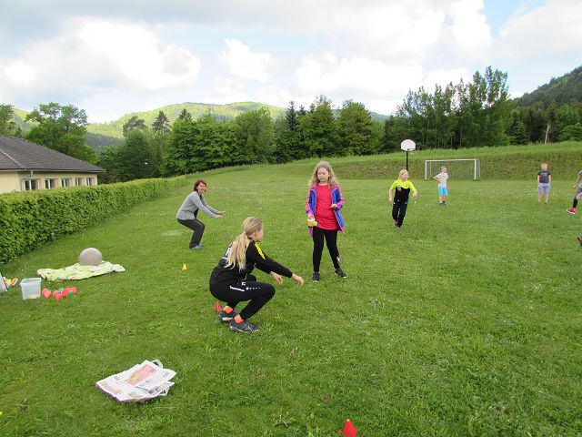 Nach der langen „Coronapause“ kann es endlich wieder mit unseren zusätzlichen Bewegungseinheiten der Aktion: Kinder gesund bewegen“ weitergehen. Bis zum Schulschluss gibt es jede Woche eine zusätzliche Turnstunde für alle Klassen mit unserer Trainerin Daniela Jagsch. Start war der 31. Mai und bei schönem Wetter konnte dieses Mal der Sportplatz genutzt werden. Die Kinder lernten wieder neue Spiele kennen und zeigten vollen Einsatz bei den verschiedensten Übungen.