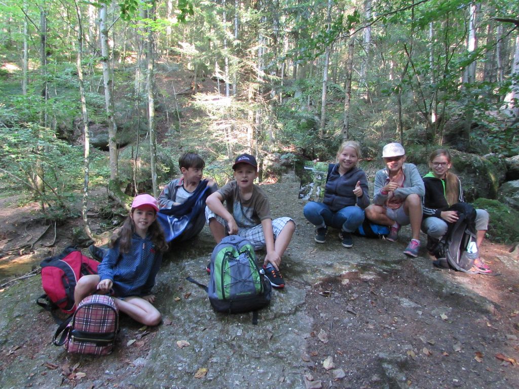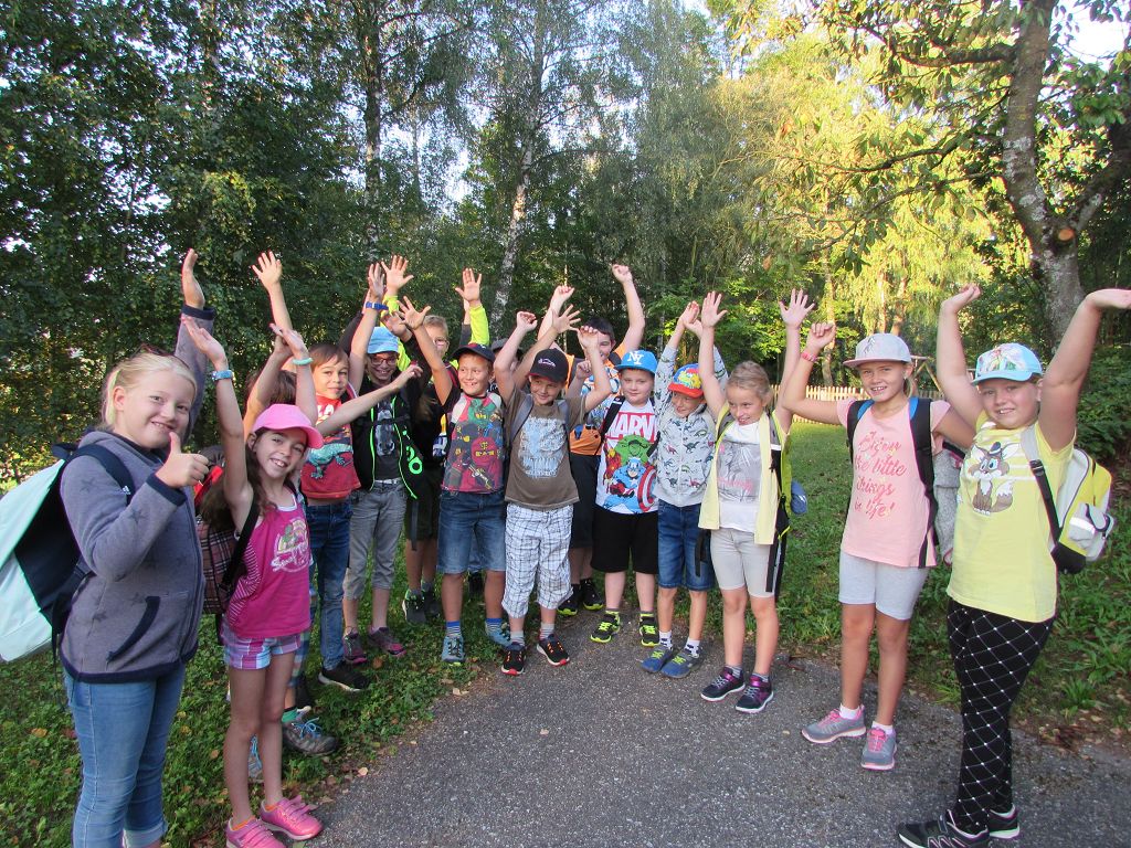Am Mittwoch, den 23. September 2020, genau zu Herbstbeginn, machten die beiden ersten Klassen mit ihren Lehrerinnen ihren ersten Wandertag in der Schule. Begleitet und unterstützt wurden unsere „Kleinen“ von der zweiten Klasse. Gemeinsam und doch mit Abstand ging es los zum Puschacherteich. Das Wanderwetter passte gut und alle hatten am Ziel noch Kraft für Spiel und Spaß auf der Wiese beim Badeteich. Der Rückweg war dann für die Kleinsten natürlich noch ein bisschen anstrengend, doch alle schafften es rechtzeitig zurück zur Schule.