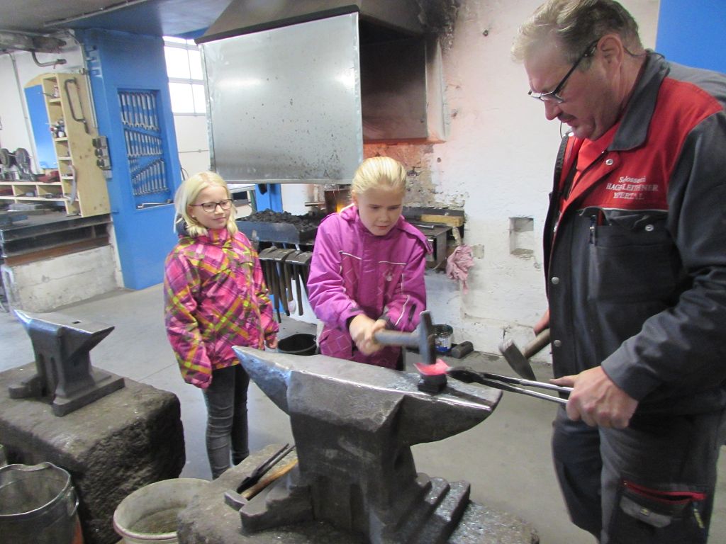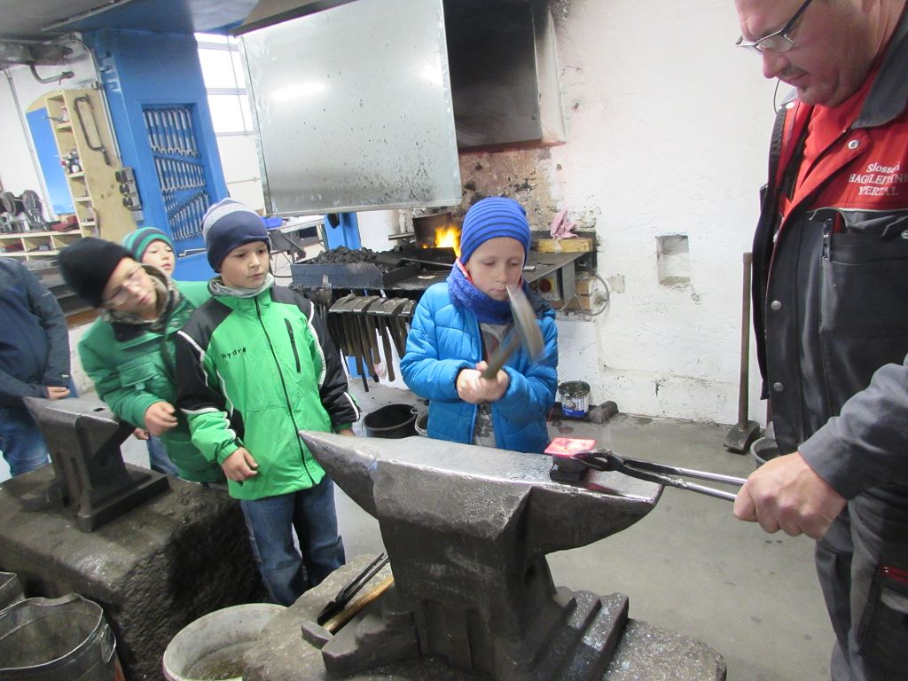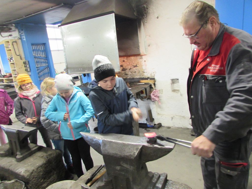 Am 8. Oktober 2019 machte die 3. Klasse mit ihrer Klassenlehrerin einen Lehrausgang zur Schlosserei der Familie Hagenleithner. Gleich nach der ersten Stunde ging es zu Fuß von der Schule nach Hofedl zum Betrieb der Familie Hagenleithner. An diesem interessanten Vormittag hieß das Motto „Learning by doing“. Jedes Kind durfte mit Unterstützung von Herrn Hagenleithner, Herrn Grünberger und Herrn Brunner einen eigenen Kerzenhalter anfertigen. Nach getaner „Arbeit“ konnten sich die Kinder mit einem Muffin stärken. Danke an die Familie Hagenleithner und ihre Mitarbeiter für diesen praxisbezogenen Lehrausgang.