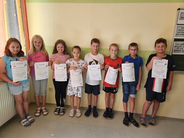 Wir freuen uns, dass wir unseren Schülern und Schülerinnen der 4. Klasse ganz herzlich zu einem großartigen Erfolg gratulieren können. Alle 19 Buben und Mädchen haben mit einer ausgezeichneten Leistung die theoretische und praktische Radfahrprüfung bestanden und erhalten nach den Herbstferien ihren ersten „Führerschein“. Die Klassenlehrerin Frau Plankl, die Eltern und die zuständigen Beamten der Exekutive haben unsere Kinder der 4. Klasse im Vorfeld sehr gut vorbereitet und unterstützt. Herzlichen Dank auch an die Raika Altenmarkt für die Übernahme der gesamten Prüfungsgebühren und die kleine Überraschung zur bestandenen Prüfung.
