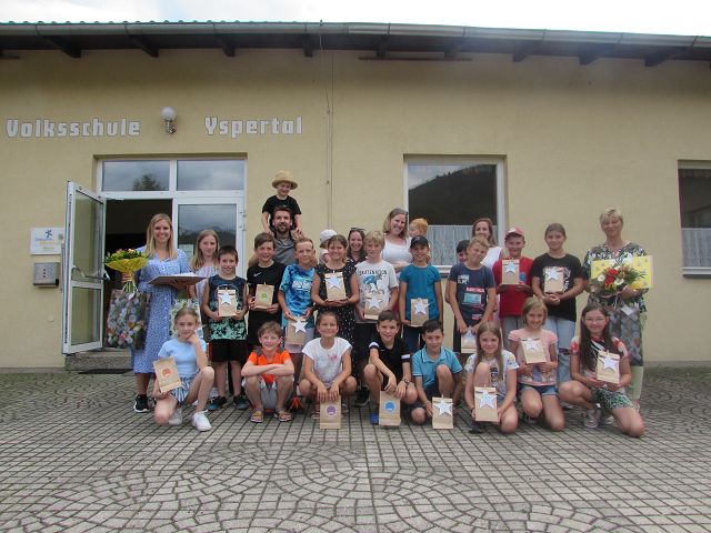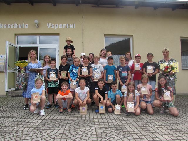 Am Freitag, den 24. Juni 2022, gestalteten die Kinder der 4. Klasse ihre Abschlussfeier. Nach dem offiziellen Teil, bei dem die Schülerinnen und Schüler Gedichte und Lieder vortrugen und Geschenke überreichten, gab es den gemütlichen Teil. Die Eltern, Lehrpersonen und Kinder saßen zusammen und blickten bei Grillwürsten, Mehlspeisen und Getränken auf 4 tolle Jahre zurück. Auch die Benutzung der Hüpfburg machte allen Beteiligten große Freude. Der Höhepunkt des Tages war die gemeinsame Übernachtung im Turnsaal der Schule. Nach dem Frühstück wurden die Kinder am nächsten Tag wieder von den Eltern abgeholt. Es war ein sehr gelungenes Fest!
